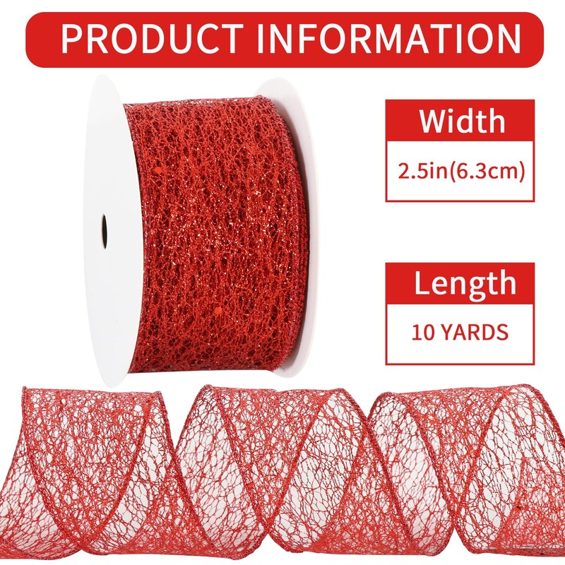 - 【About Size】The Package Comes With - 1 roll of Glitter Mesh Wired Ribbon, each roll measures 10 yards in length, and 2.5 inch in width, long enough to meet your different needs for craft DIY, party decoration.