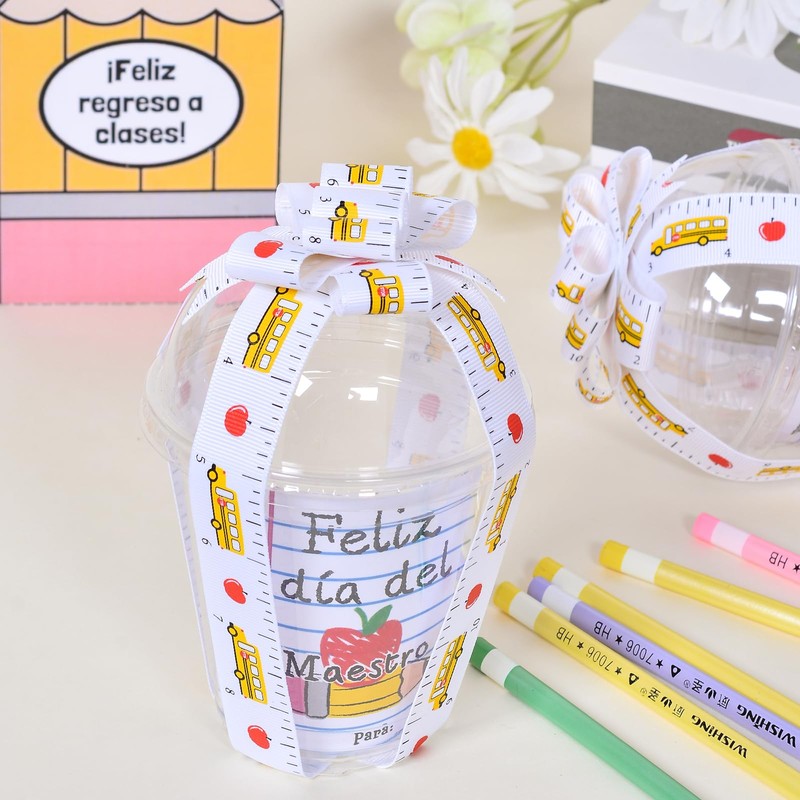 - The ruler, school bus, and apple print make this ribbon ideal for back-to-school projects, party favors, or thank-you gifts. The cute pattern adds a playful touch