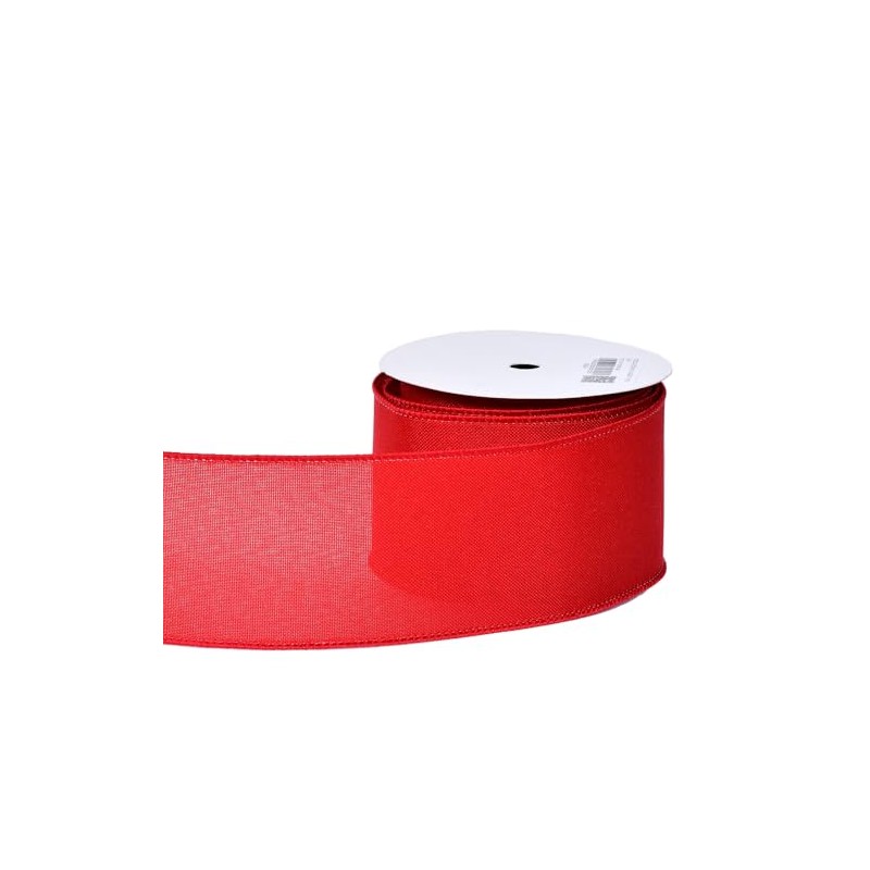 Ribest Red Linen Wired Ribbon, 2.5 Inch × 10 Yard, Burlap Valentine Ribbon for Wreaths Bows Making Crafts Christmas Tree Decoration Gift Wrapping