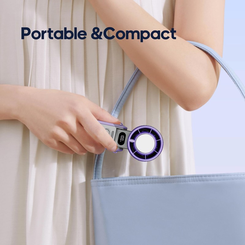 - 180° Foldable Portable Fan:The ultra-small foldable body design and ultra-light weight of 5lb allow you to easily put it in your pocket or bag, saying goodbye to bulky traditional fans and easily achieving mobile cooling. The neck fan also comes with an anti-lost lanyard, so no matter where you go, this travel fan portable ensures you'll stay comfortable all day long