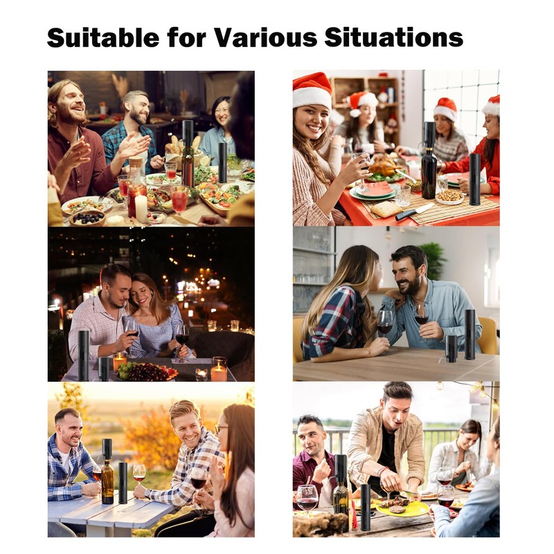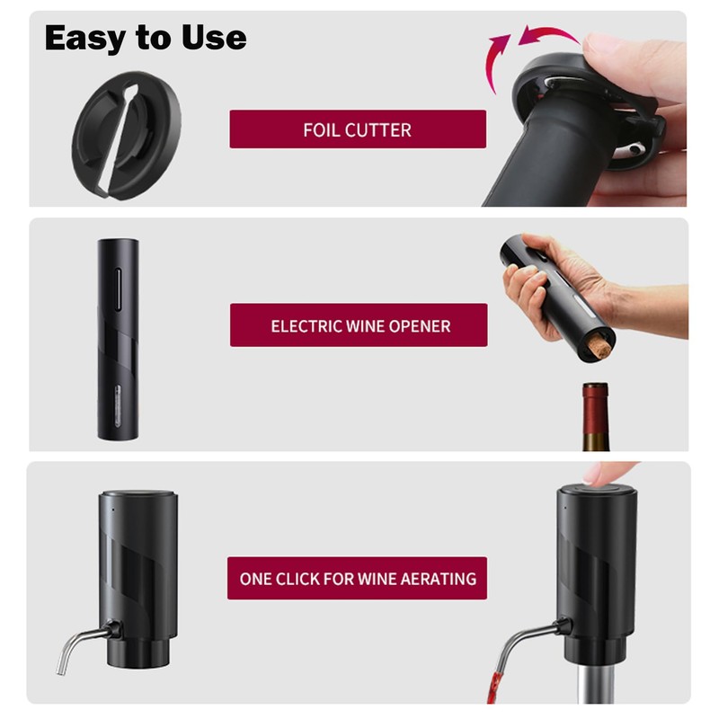 - Gift for Wine Enthusiasts: This elegant 4-in-1 wine accessory set includes a rechargeable electric wine opener, aerator, vacuum stoppers, and foil cutter, all presented in a beautifully crafted gift box. Ideal for birthdays, anniversaries, housewarmings and more festive occasions.