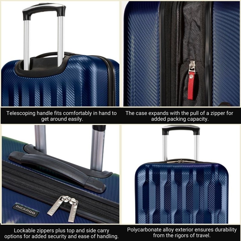 Ricardo Beverly Hills Lombard Hardside Medium Checked Luggage – Expandable Travel Bag with 8-Spinner Dual Wheels & Telescoping Handle, 25-inch, Royal Blue