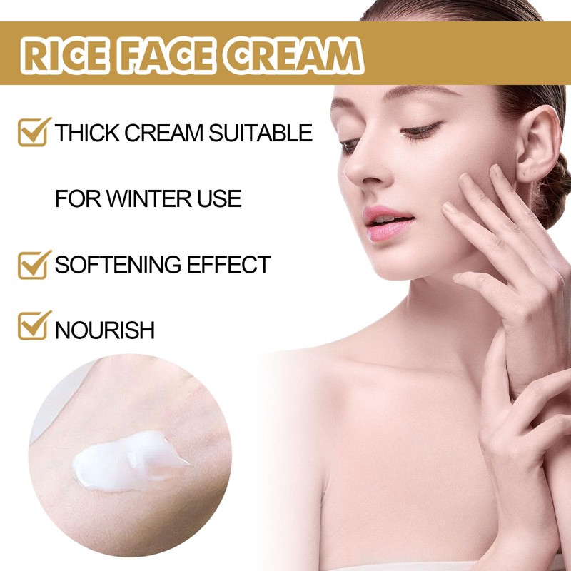 - [Rice Cream]: This rice face cream is made from rice extract to provide nutrients to the skin, making it firm, delicate and smooth, repair skin barrier, the light texture of the cream ensures a refreshing and comfortable feeling without heavy sticky sensation and does not clog pores