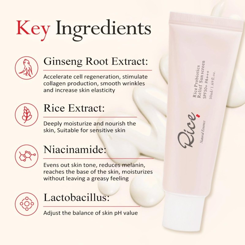 - [Invisible, Pore-Friendly Sun Protection]: This rice sunscreen korean spf 50 features a breathable, non-comedogenic finish that avoids clogging. Great for oily or acne-prone skin, this rice probiotics face suncream also works as an spf 50 face primer for clear, makeup-ready skin.