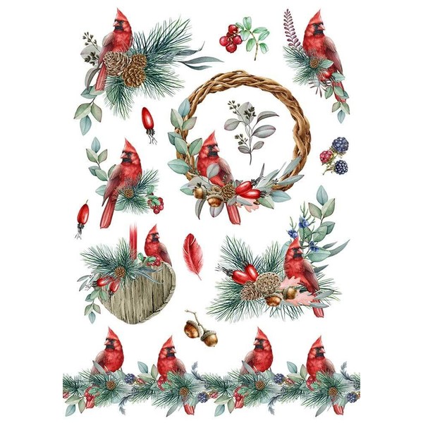 Rice Paper for Decoupage A4 Merry Christmas (Red Cardinal - 2 Sheets)