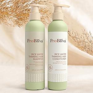 Rice Water Thinning Hair Shampoo & Conditioner - Anti Hair Loss - Regrowth & Thickening Strengthening Repair, Biotin Rosemary Oil Infused