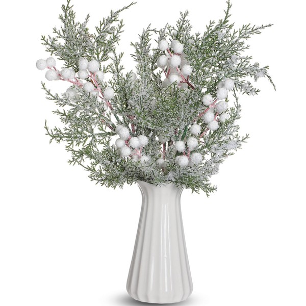 - Vibrant Colors: the artificial pine branches with white berries feature lifelike light green cedar branches that have been dusted with artificial snow and embellished with Christmas white berries for a festive look; Featuring fresh looking snow and rich white berries, these faux cedar sprays are ready to bring a touch of the outside winter charm straight to your holiday home, adding warmth to the space that needs a bit of Christmas charm