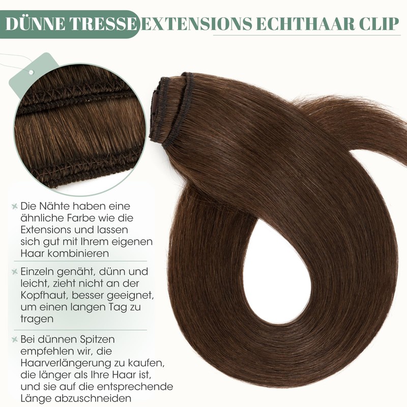 Rich Choices Clip-In Real Hair Extensions, Pack of 8, 20 cm, #4 Medium Brown Hair Extensions, Real Hair, Remy Silky Straight, Invisible Clip-In Hair Extensions, Natural, Thin Wefts
