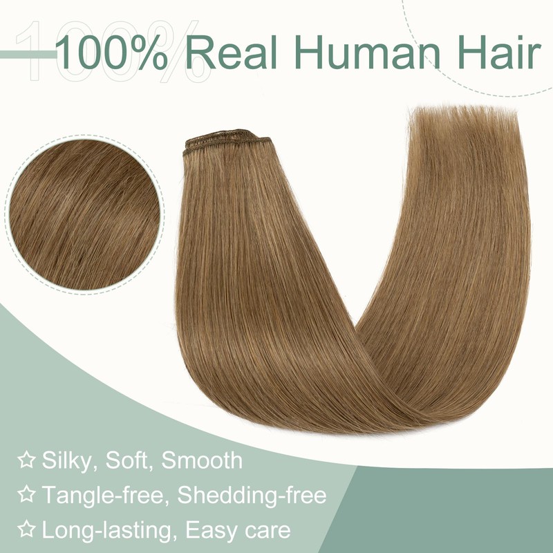 Rich Choices Clip-In Real Hair Extensions, Pack of 8, 50 cm, #6 Light Brown Hair Extensions, Real Hair, Remy Silky Straight, Invisible Clip-In Hair Extensions, Natural, Thin Wefts