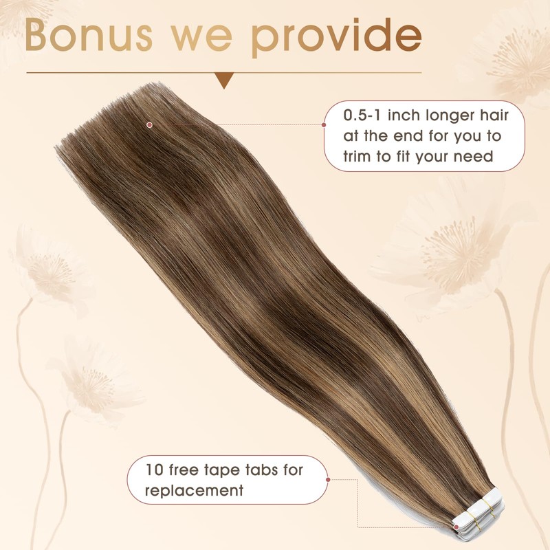 Rich Choices Tape in Hair Extensions Balayage Medium Brown to Dark Blonde Tape Hair Extensions Real Human Hair 16 Inch 10 pcs 25g Remy Hair Extensions Injection Tape Extensions Human Hair