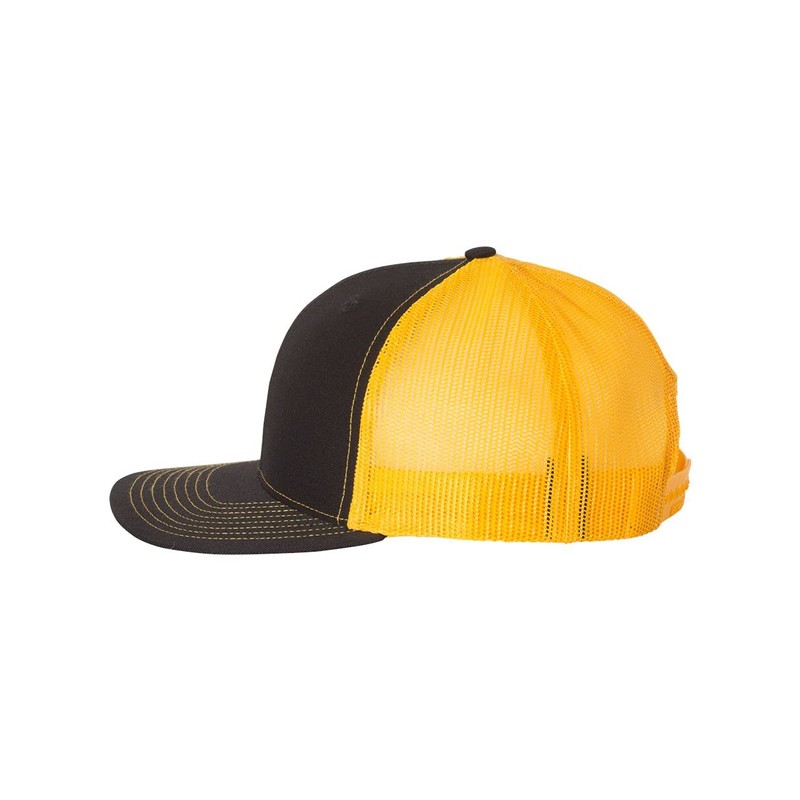 Richardson 112 Hat Structured Classic Trucker Snapback Cap, Adjustable, Black/Gold