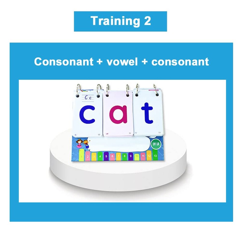 Richardy English Phonics Flashcards with 3 Syllable Flips Spelling Flip Cards Kids Educational Learning Toys Children Reading Games CVC Sight Words 107 Cards Level 1