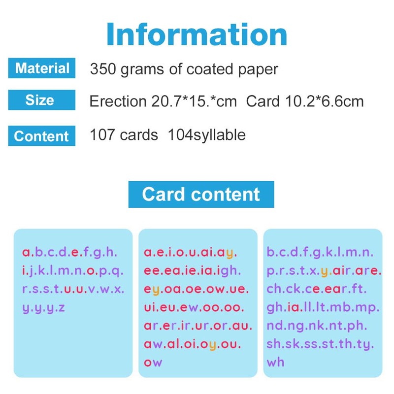 - 【Multiple Ways to Use】Can be used as a stand-alone learning card for English Phonics. And also can be used as combined English Phonics. Learn more English words by using different forms.