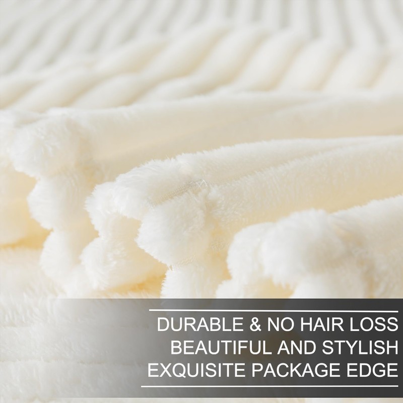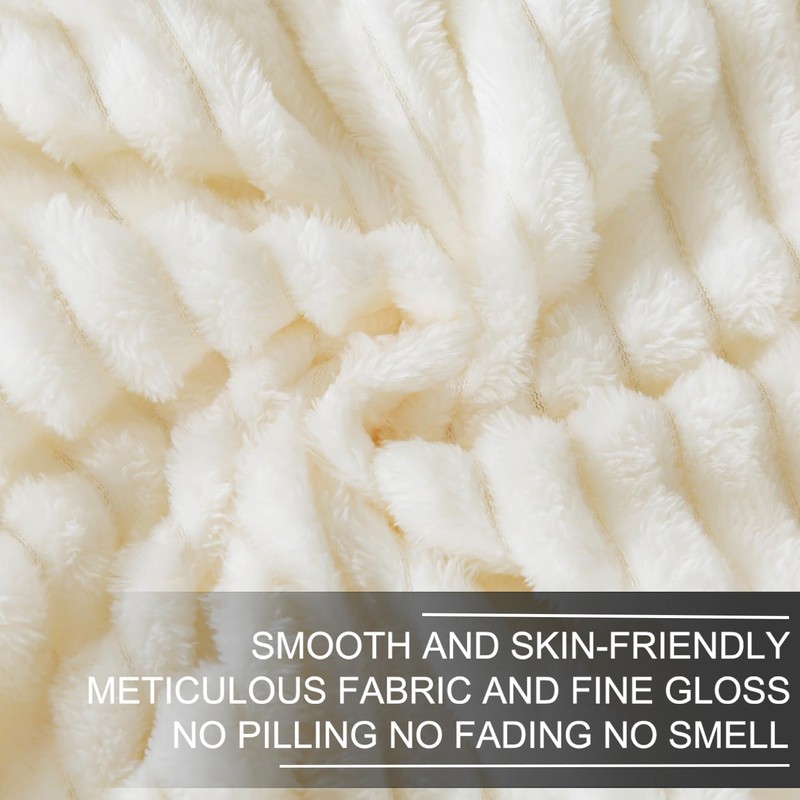 Richave Cuddly Blanket King Size,Premium Lightweight Anti-Static Fluffy Fleece Blanket with Striped Pattern for King Calking Bed, 90x108 Inches,Cream