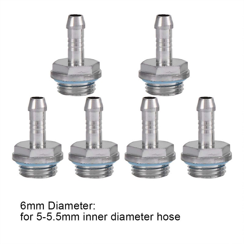 Richer-R Water Cooling Fitting,6 PCS PC Water Cooling Two-Touch Fitting G1/4 Thread Barb Connector for Tube,6mm/ 7.2mm/ 9mm/ 11mm Diameter For Your Option(6mm)