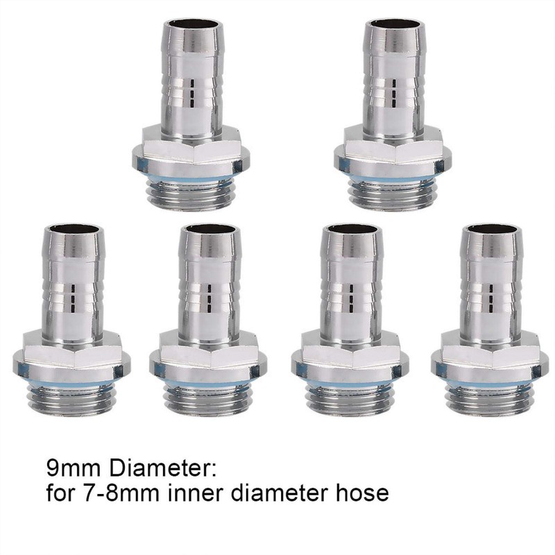 Richer-R Water Cooling Fitting,6 PCS PC Water Cooling Two-Touch Fitting G1/4 Thread Barb Connector for Tube,6mm/ 7.2mm/ 9mm/ 11mm Diameter For Your Option(9mm)