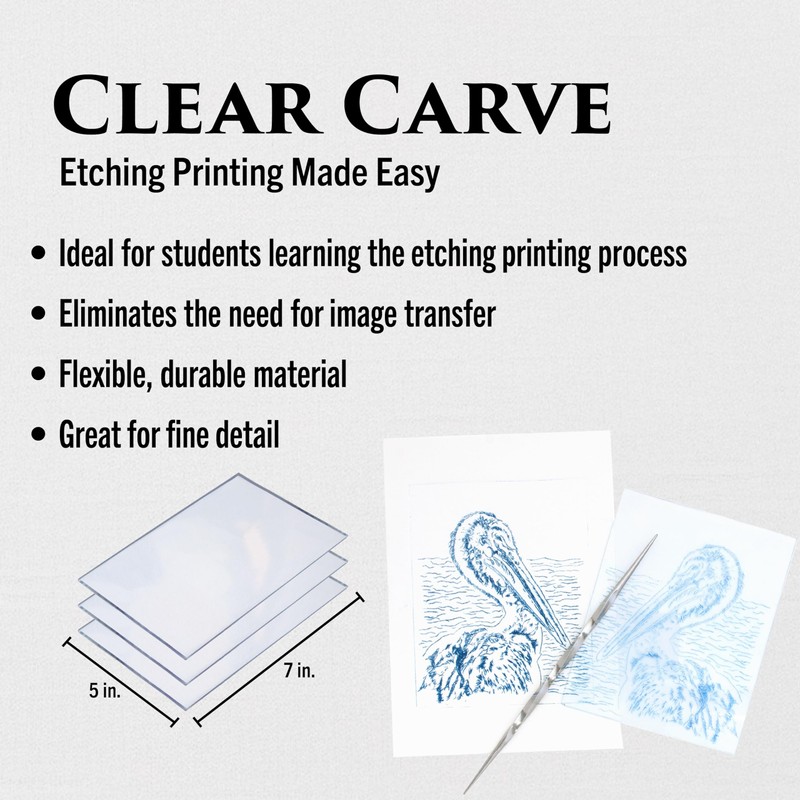 - Clear Carve Etching Plate - Same plate, two different techniques! Ideal for both monotype and drypoint printmaking techniques. Richeson Clear Carve Etching plates are work beautifully for detail work.