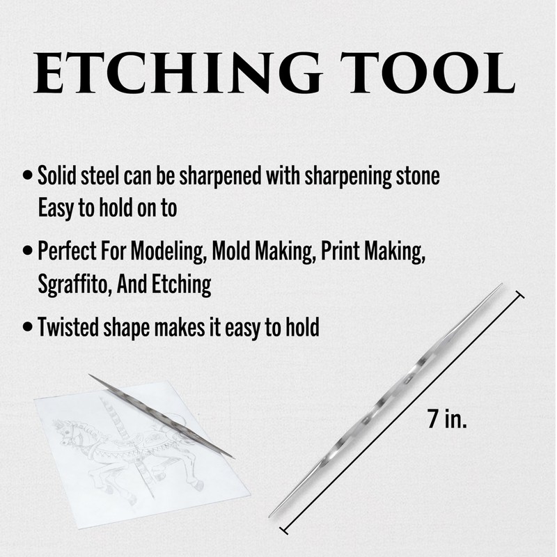 - Set includes: (6) Clear Carve Etching Plates, twisted etching tool, 6” x 9” 88# printmaking paper (50)