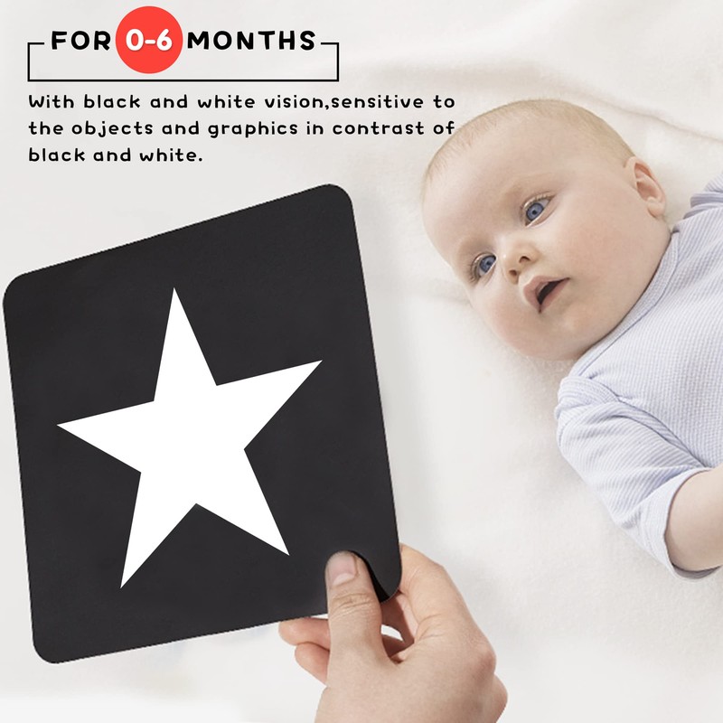 - Develop the visual perception of babies: baby visual stimulation cards are a must for the visual development of the child. The use of children's cards at early age can promote immediate memory of the right brain. Black and white flash cards are also a good helper for parents, if the baby cries when changing nappies, you can attract the baby's attention with the visual card