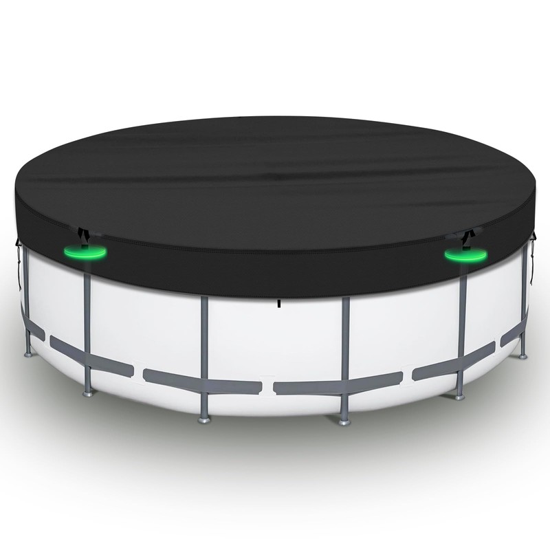- PREMIUN FBARIC - The round pool cover surface fabric is made of waterproof 420D Oxford fabric. The back side is PU coated, which can effectively prevent UV rays and water evaporation.