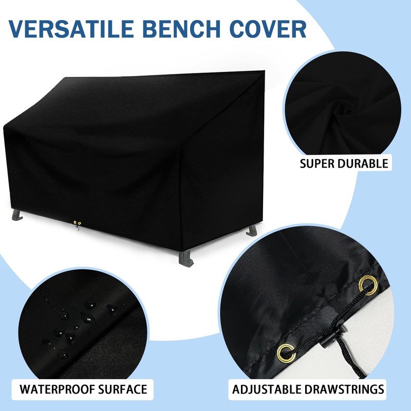 - 【CONVENIENT TO USE】There are drawstrings at the bottom to enhance wind resistance. Place the garden bench cover over your furniture and then fasten the bottom drawstrings to the chair legs to make the cover fit better, so that it can be windproof and waterproof in all directions, the cover will not be blown over in high winds.
