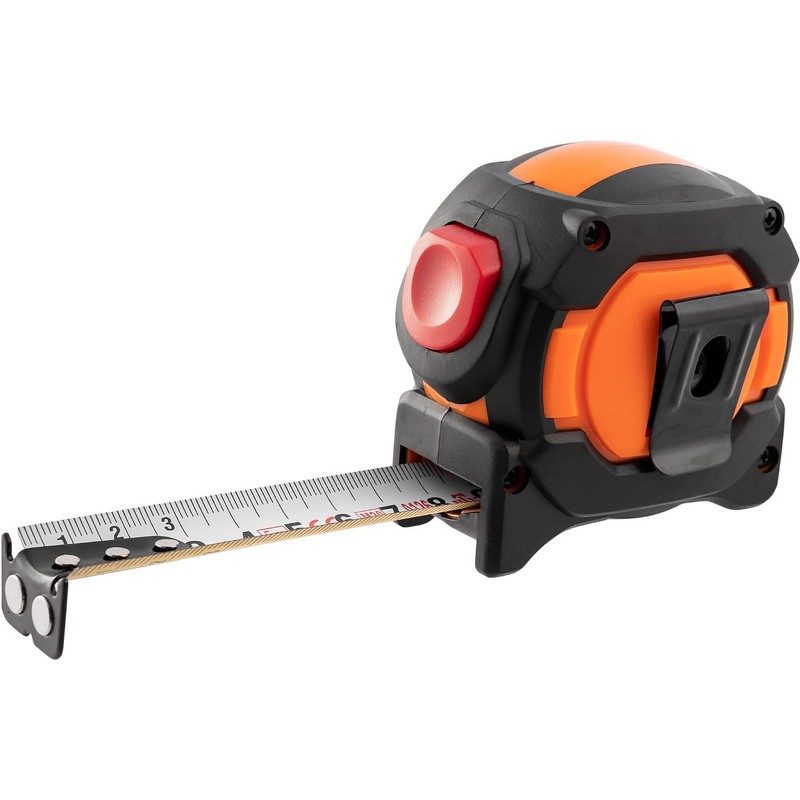 - Large, clear numbers and a clearly visible division. Tape measure coated with non-slip ABS rubber. Equipped with a metal belt clip.
