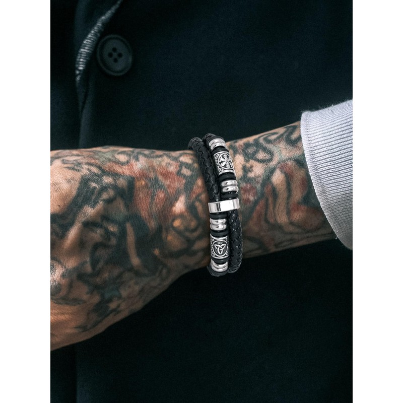 - Double-Row Stylish Design: Double Layer Leather Cuff Bracelet Design, beads of celtic style with the engravings of protection and harm to protect the elements. A beautiful work of art for men and fit well with any outfit and occasion
