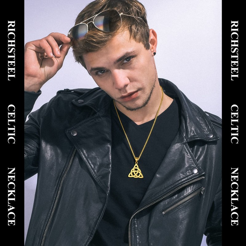 Richsteel Stainless Steel Celtic Knot Chain for Men and Women, Trinity Pendant with Necklace, Retro Celtic Jewellery for Birthday, Christmas, No Gemstone
