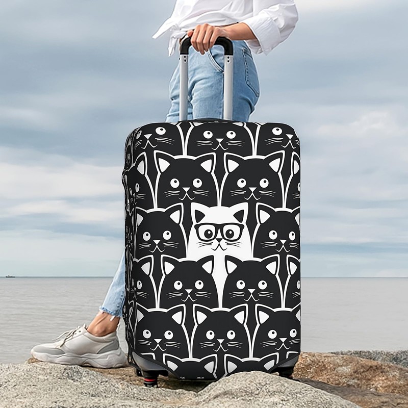Richugui Cute Black and White cat Pattern Luggage Cover Elastic Washable Stretch Suitcase Travel Suitcase Protector Anti-Scratch Cover for Kid and Adult,S (18-21 inch)