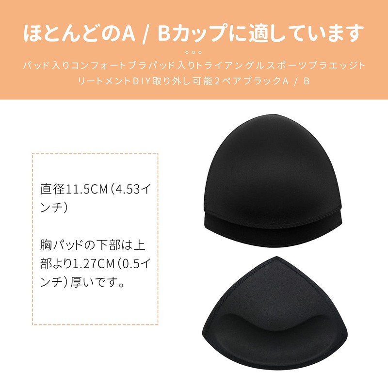 - Size: Suitable for most A/B cups. 11.5cm(4.53") in diameter, the bottom of the bra pad is 1.27cm(0.5") thicker than the top