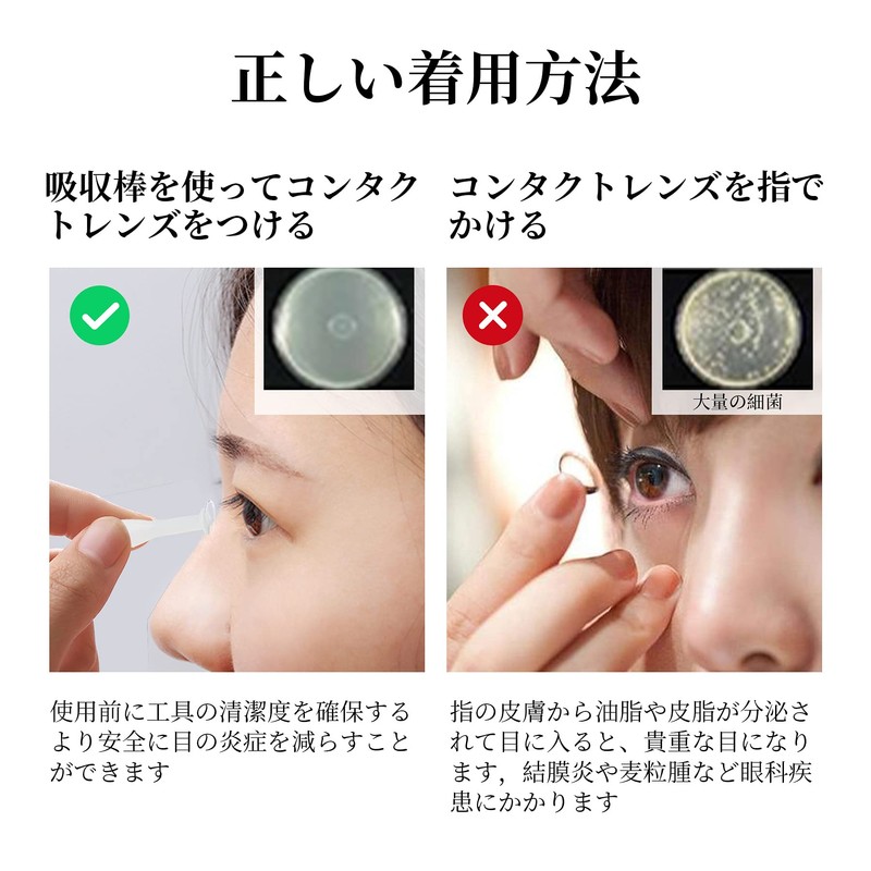 ②コンタクトレンズの左側と右側を区別するように注意してください。