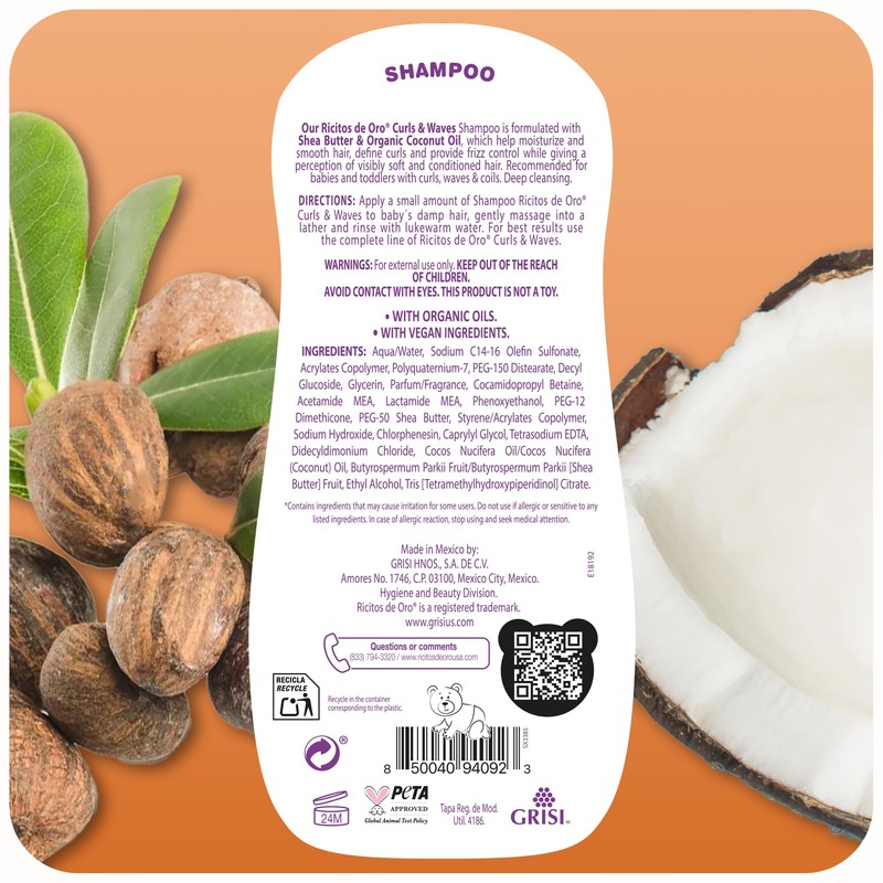 Ricitos de Oro Curls & Waves Shampoo: Defines & Highlights Natural Curls, Moisturizes & Smoothes, Frizz Control, Deep Cleanses Scalp, Baby Shampoo, Ideal for Kids & Toddlers, 16.9 oz, 2-Pack