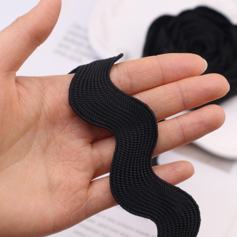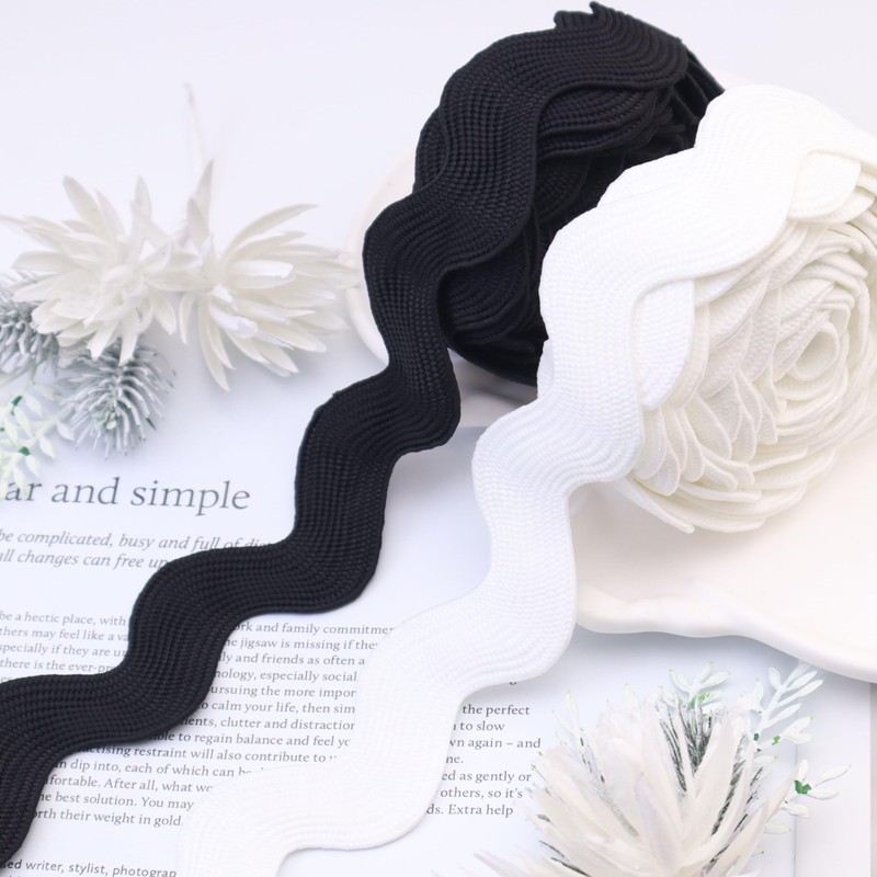 Rick Rack ancho Rick Rack Wave Bending Fringe recortar 4 yardas Cinta de encaje negro Ric Rac recortar para coser personalizar, boda, hogar, decoración de fiesta
