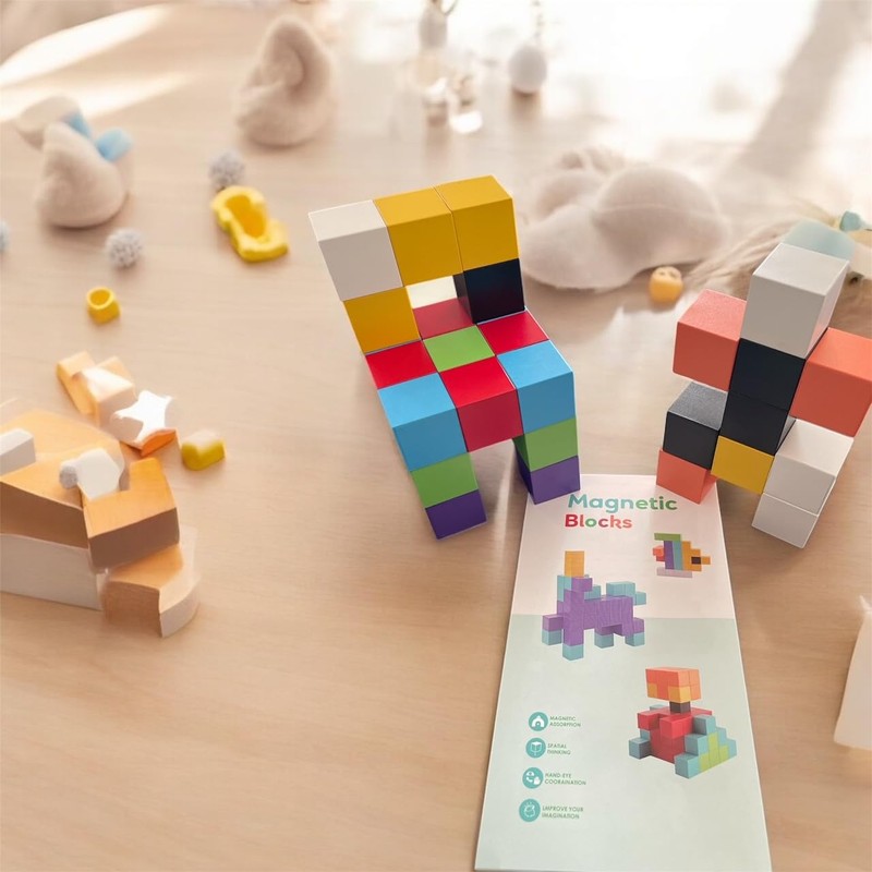 - -Safe and Strong Magnet- Magnetic blocks for toddlers are made of high quality ABS material and crafted with the round edges and proper size. Our strong magnet is sealed inside the plastic case to prevent the magnets from falling out. No need to worry about hurting hands or being swallowed. Amazing gift for your 3,4,5,6,7,8 or 20yo that needs an at work desk toy.