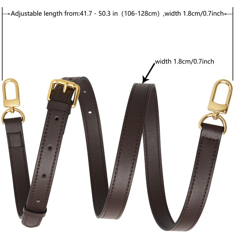 - 【Purse strap Size】Adjustable length from:41.7 - 50.3 in(106-128cm),width 1.8cm/0.7inch.Includes gold snap hooks suitable for crossbody and shoulder bags.
