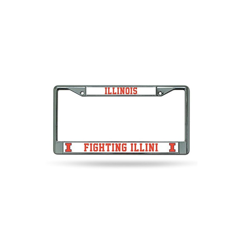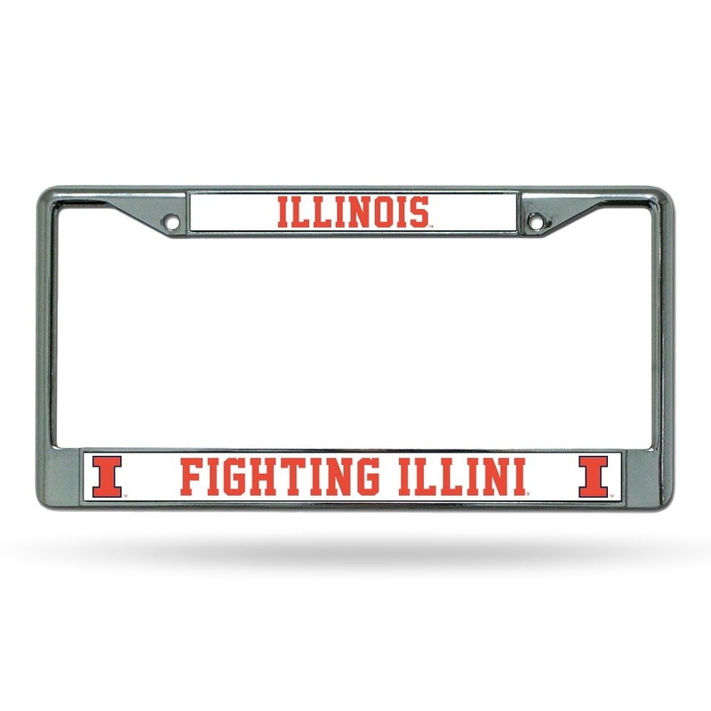 Rico University of Illinois Fighting Illini - 12" x 6" Standard Size - Chrome Metal License Plate Frame