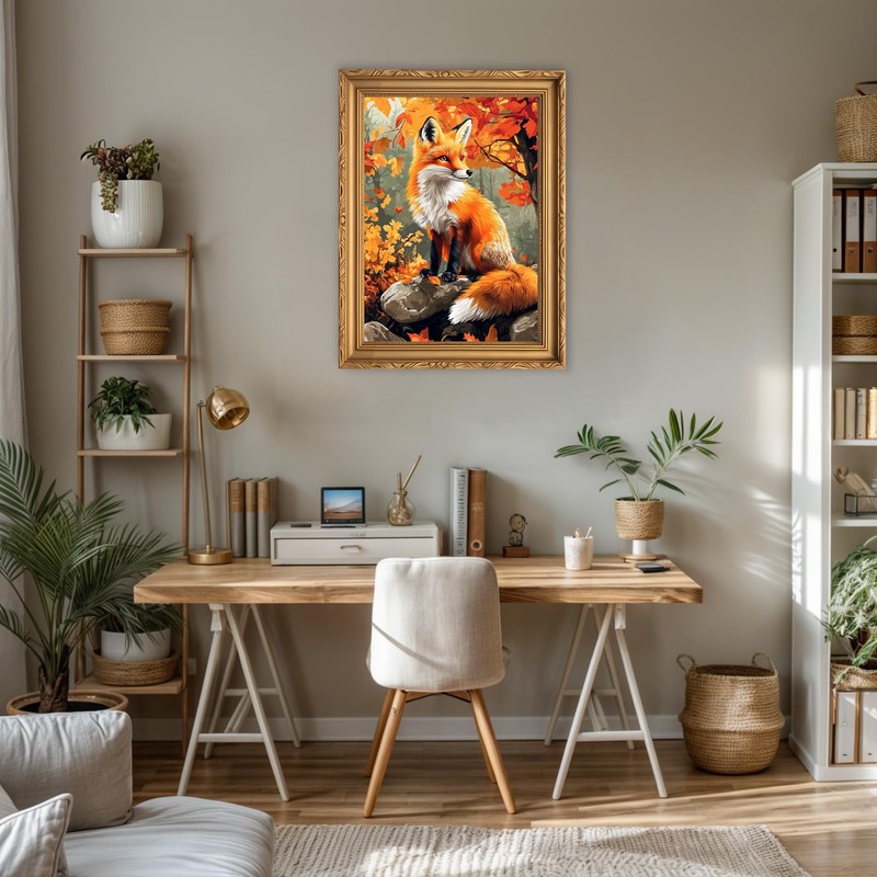 RICUVED Fox Diamond Art Kits for Adults, Autumn Diamond Painting Kits for Beginners, Animal DIY 5D Full Round Drill Gem Fall Crystal Rhinestone Art and Craft Kit for Gift Home Wall Decor 12x16Inch