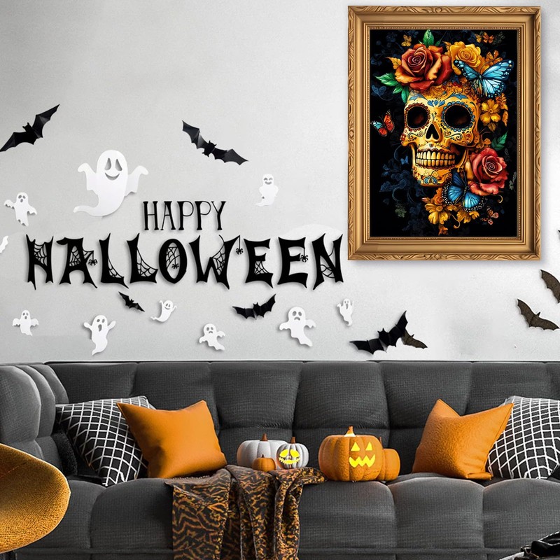 RICUVED Skull Diamond Art Kits for Adults, Butterfly Diamond Painting Kits for Beginners, Flowers DIY 5D Full Round Drill Gem Crystal Rhinestone Art and Craft Kit for Gift Home Wall Decor 12x16Inch
