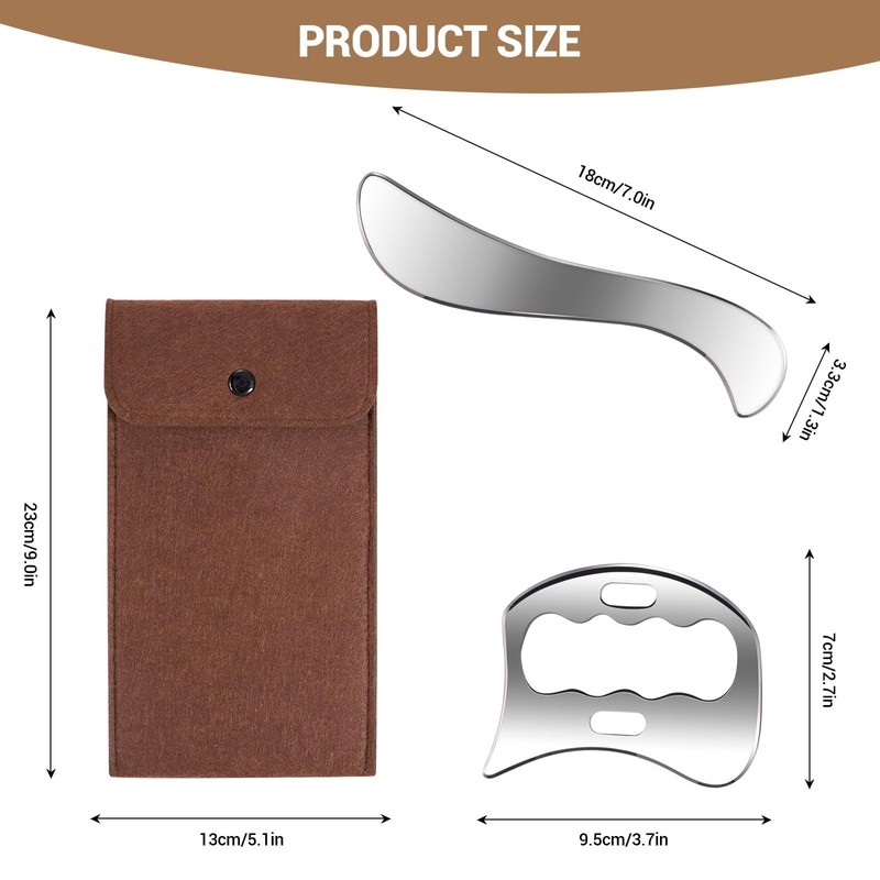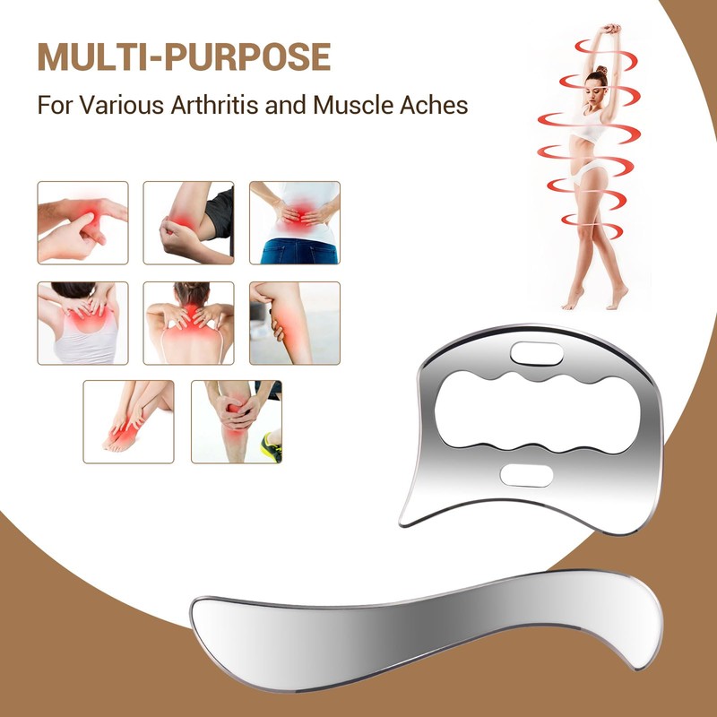 Ricyea Gua Sha Stainless Steel Set of 2 Gua Sha Scraper Muscle Fascia Tool Massager for Body & Face, Ideal for Muscle Relaxation, Cellulite & Lymphatic Drainage