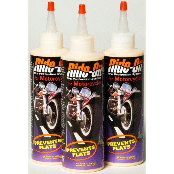 While you ride, a protective layer of Ride-On TPS - a tire balancer and sealant containing fibers six times stronger than steel evenly coats the inner surface of your tires. This coating balances your tires and makes them into self sealing tires for LIFE! Balance - With one installation of Ride-On, lead weights become a thing of the past. While Ride-On works in conjunction with traditional weights, you won’t need them anymore. Ride-On is specially formulated to hydrodynamically balance high-speed tires and dampen road noise and vibrations that cause a rough ride. The great thing is Ride-On will continue to adjust and literally rebalance your tires as you ride for the legal life of the tires. So go ahead, pop off those wheel weights, shine your wheels, and enjoy the smoothest ride you have ever experienced on your bike thanks to the orange wonder of the world! Ride-On is TPMS friendly but is not recommended if your sensors are not sealed. Although using Ride-On with these types of sensors does not always create issues, we as the manufacturer of Ride-On do not recommend using our product in applications with TPMS systems without potted electronics. Even moisture contained in the compressed air can enter the electronics and over time create issues not related to any tire sealant. We recommend that you check with your dealer or manufacturer to determine whether your TPMS sensor has potted electronics and batteries. We do not recommend the use of Ride-On in 2009, 2010, 2012, and Newer Gold Wings and certain KTM 1190 and 1290 Adventures as the sensors on those bikes are not potted (hermetically sealed)