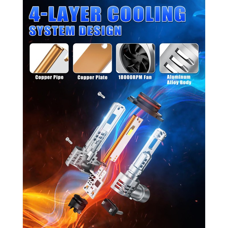 RIDENOW hb4 bulbs,Super Bright 6500K Cool White with Cooling Fan, IP68 Waterproof, Pack of 2