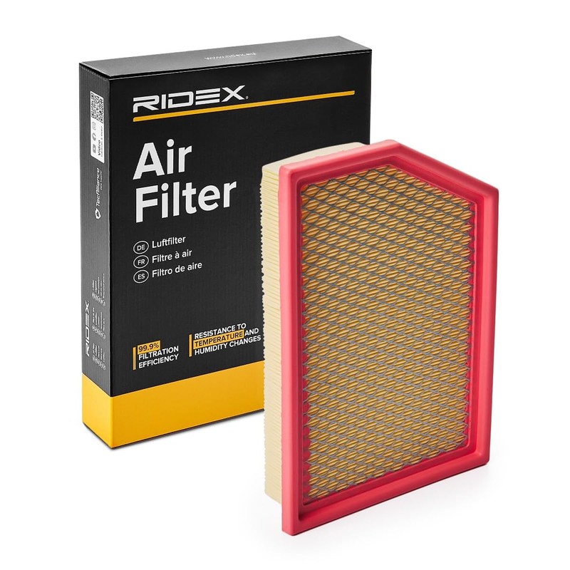 • Thanks to a specially impregnated filter medium, the RIDEX air filter is protected from the elements and has a long service life.