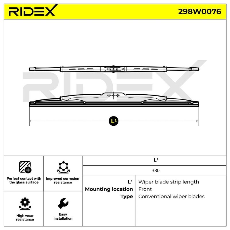 RIDEX Windscreen Wiper without Spoiler Front Windscreen Wiper Length 1: 380 mm