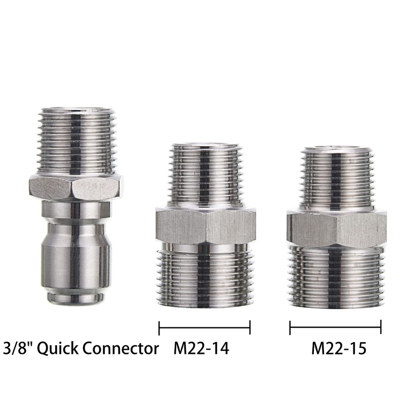 - Power washer short gun kit include one piece pressure washer short gun with 1/4’’ quick disconnect socket, one piece 3/8'' quick connector, one piece M22-14mm fitting and one piece M22-15mm fitting.