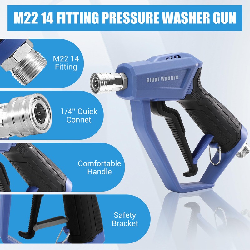 - COMFORT SAFETY SHORT GUN: Short pressure washer gun not fit GARDEN HOSE or WATER HOSE! You can turn it on and off anytime, anywhere, eliminating the need to return to the pressure washer to shut it down. Furthermore, short nozzle pressure washer gun is designed with an ergonomic handle and a smooth - pull safety lock, ensuring both comfort and safety during use