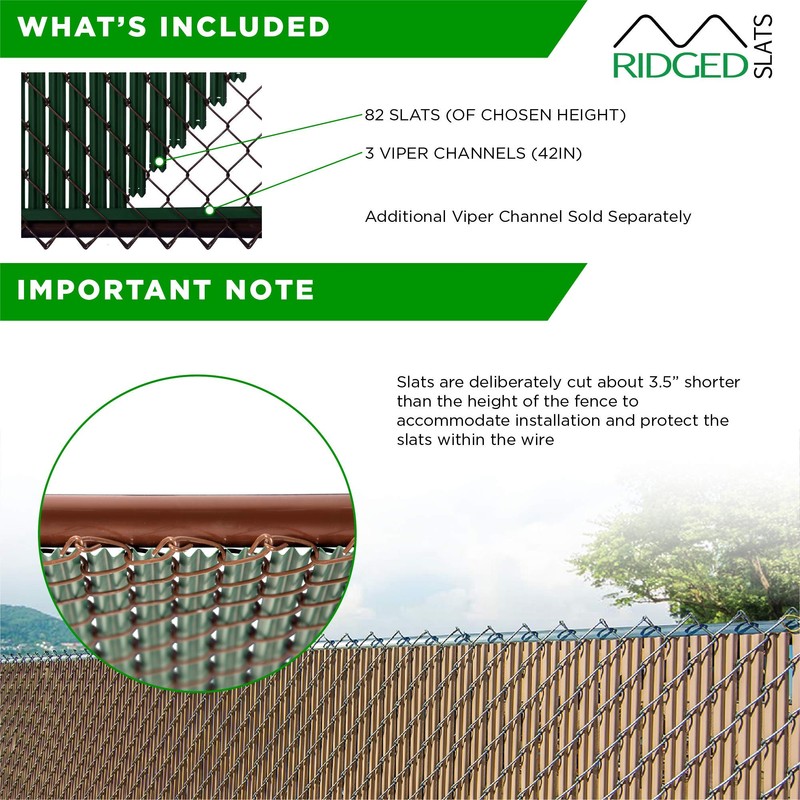 Ridged Slats Made in America Slat Depot Single Wall Bottom Locking Privacy Slat for 3', 4', 5', 6', 7' and 8' Chain Link Fence (6ft, Brown)