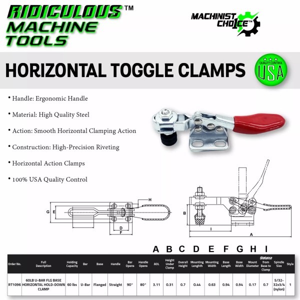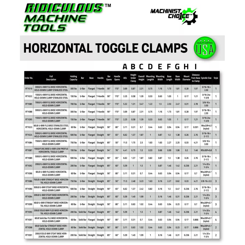| 60LB U-BAR FLANGE BASE HORIZONTAL HOLD-DOWN TOGGLE CLAMP (205-U) Combine items from our RIDICULOUS Store for shipping discounts at checkout. Combine multiple items to reduce shipping costs. All items ordered from Friday Evening through the weekend will ship on Monday or the next Business Day.. |