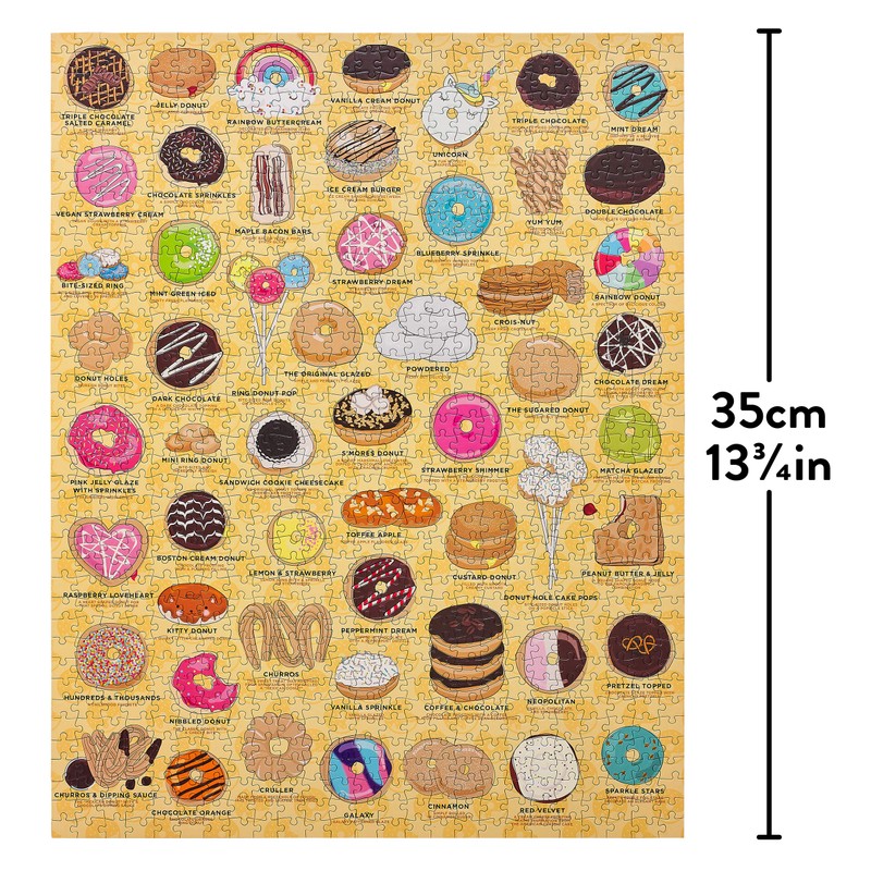 - 1,000-PIECE PUZZLE – Do-nut worry about having a dull day with the tasty Donut Lover’s Jigsaw Puzzle from Ridley’s! This 1,000-piece jigsaw puzzle will delight and entertain puzzlers of all ages.