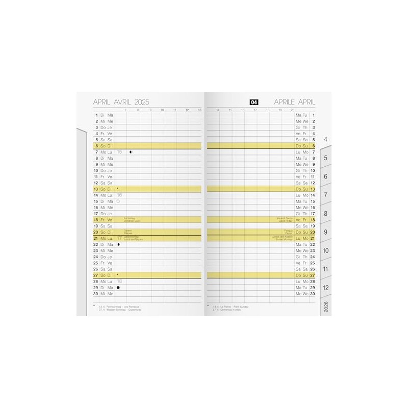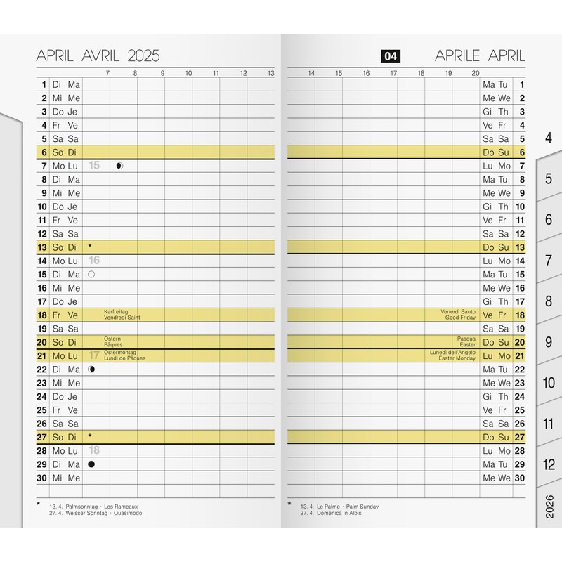 rido/idé Monthly Replacement Calendar, Four Language Model M Planner (2025), 2 Pages = 1 Month, A6, 32 Pages, White