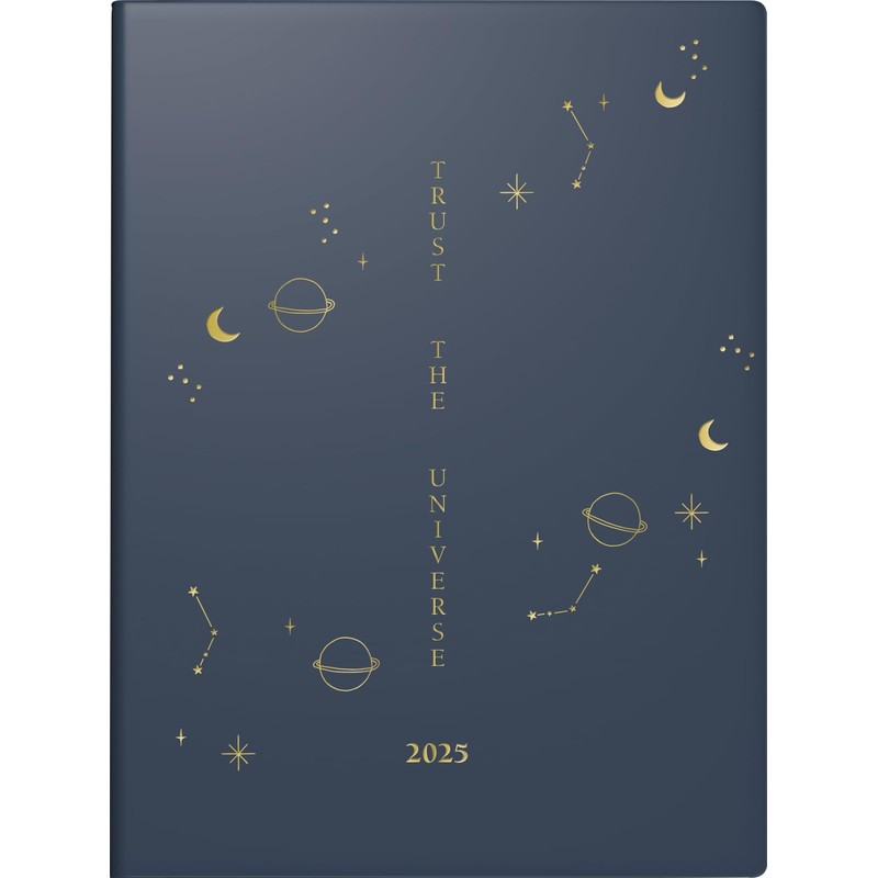 rido/idé Pocket Diary Young Line Mini (2025) "Universe", 2 Pages = 1 Week, A6, 160 Pages, Graphic Cover, Dark Blue